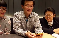 호출하니 작은키에 낑낑대며 면보로 누르고,